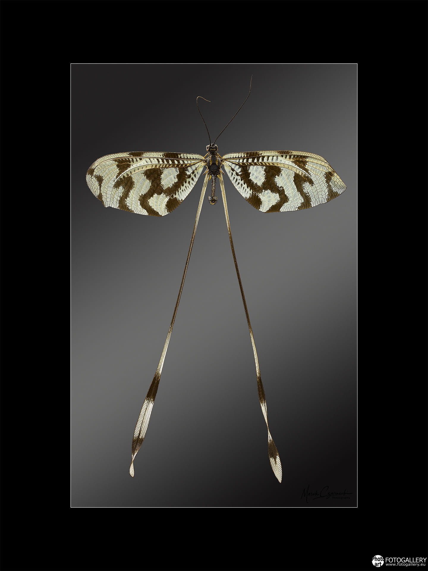 Fotografia pochodzi z autorskiego projektu artysty „Wielki Makro Świat” i przedstawia portret Sieciarki (Nemoptera sinuata) w skali ponad 20-krotnego powiększenia. Fotografia wykonana została w 2019 roku aparatem o matrycy 50 Mpx z obiektywem macro, w technologii warstwowego wykonania ze zmieniającą się płaszczyzną ostrości. Najwyższej jakości wydruk cyfrowy wykonany jest na papierze fotograficznym, z zastosowaniem atramentów pigmentowych UltraChrome TMHDR firmy Epson.